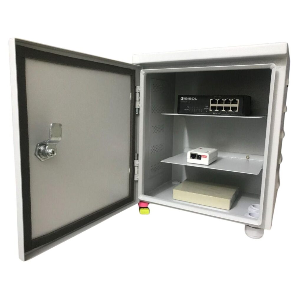 Each enclosure features thermostat-controlled cooling fans and an LED light that activates upon door opening, ensuring optimal internal conditions. We provide a two-year warranty on our cabinets, with UPS and battery warranties following the terms of their respective OEMs.